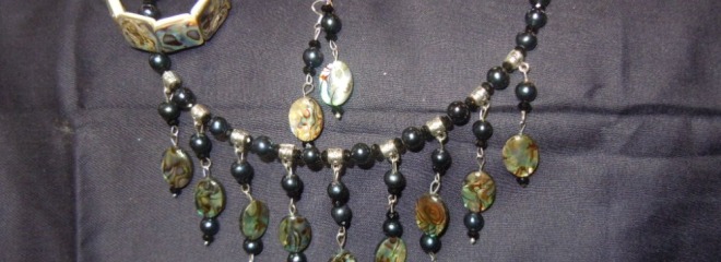 комплект из черного перламутра и черного жемчуга.Колье на проволоке держит форму. швензы серег- серебро 925 пробы.