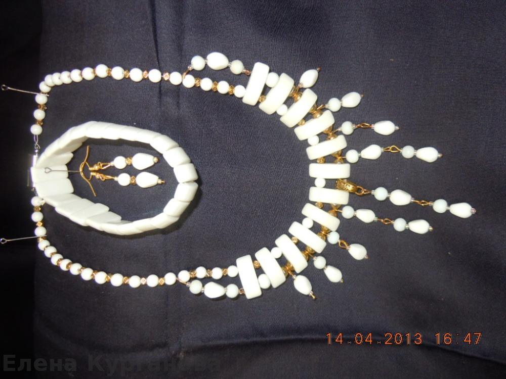 комплект из белых агатов различной огранки в стиле царицы Клеопатры.Сочетание белого с золотым очень актуально сегодня. Шикарно будет смотреться с любым декольте